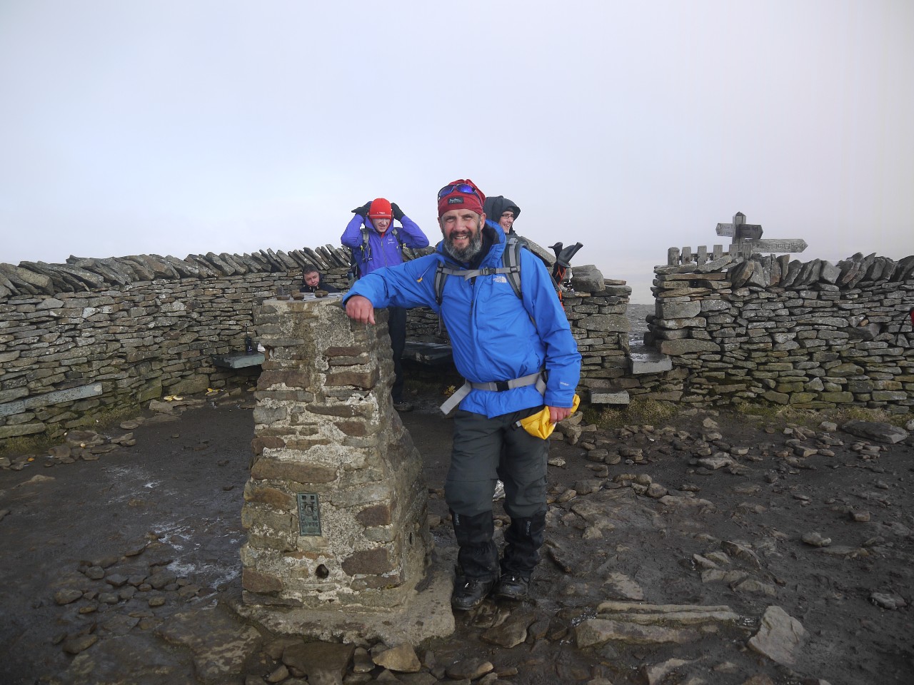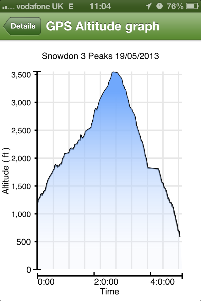 After a change of clothes we left Cumbria at 08:30 and headed south once more to Wales and the promise of sunshine on our third and final and definitely my favourite mountain Snowdon which from my from a point of view that unlike the Scottish and Cumbrian mountains with a peak that towers on the top of an almost pyramid shape block of rock and granite with stunning views over lakes and mountains and which looks beautiful just as much covered in grass or snow, fortunately for us there was no snow to be seen as we set of in the sunshine, joined by Liz by my Kilimanjaro partner, at 1:36pm on this our last leg of this great challenge feeling tired having only cat napped for about an hour and a half in the last 28 hours. Kevin and Dominique struggled up the steep inclines but their spirits never broke no matter how much pain they were in and although we were going slower that hoped we made good progress cheered on by Liz and her friend Cath and we made it to the top of Snowdon in the cloud touching the summit in 2 hours and 35 minutes later at 3:41pm 23 hours and 41 minutes after setting off up Ben Nevis, the 3 mountains in 3 countries conquered. To celebrate this and because of the amount of Pain Kevin and Dominique were in we decided to have a wee sit down to a cup of tea and cake in the café at the top before heading leisurely and carefully back down the mountain to arrive back at the bus to Andrew our driver and a glass of celebration Champagne at 18:53 were waiting for us- Job Done