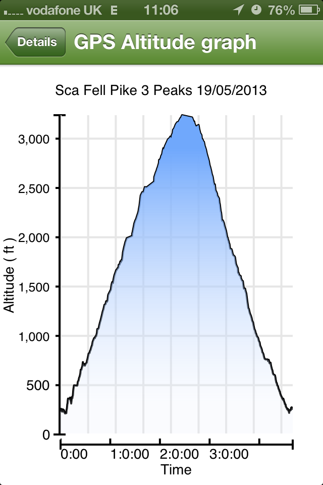 The journey to Scafell was hampered somewhat with fog over the Cumbrian fells reducing the speed to 10mph and a stop to throw up what little food I had consumed thanks to the wallowing nature of the bus and travel sickness. We arrived at Wasdale Head shortly after 3am donned our gear turned on the head torches and set off up Scafell Pike in the dark and fog at 3:30am up its punishing relentless path, remembering to keep left at the fork for fear of crossing the scree. Just short of the summit Dominique could go no further as she was in severe pain from an injury she picked up on Nevis when she slipped and hurt her leg, so she turned back whilst Kev and I finished our climb and quickly caught back up with Dominique only to find she too had thrown up. The top of the mountain was even more so covered in cloud and although it was daylight by now there was not a view to be seen. With Dominique suffering from her leg strain and Kev’s knees starting to cause him some pain we carefully made it down the hill as quickly as possible getting back to the bus at 7:47am having completed the hill in 4 hours and 17 minutes things were still looking good.